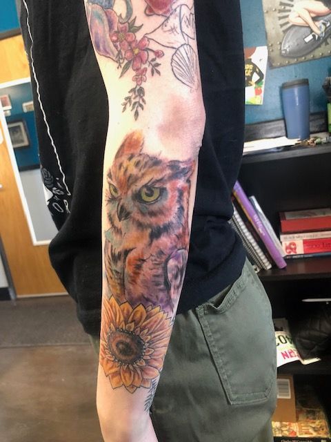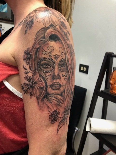 I am the owner of Lady Luck and have been tattooing for over 20 years. I have a degree in fine arts and enjoy painting in acrylic and oil mediums. I would describe my tattoo style as illustrative. I enjoy portraits, animals, floral, and designs with interesting details.